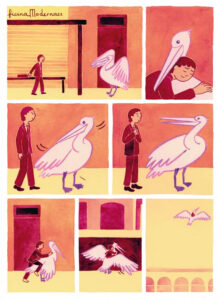 La première chose qui frappe en découvrant cet album, ce sont les couleurs chaudes et apaisantes, ainsi que les dessins d’une grande délicatesse. Ils sont l’œuvre d’Antonia Bañados, une artiste d’origine chilienne, qui nous en met plein les yeux avec ce graphisme si particulier, doux et enfantin. Elle met en images un scénario signé à quatre mains : Rudy Ortiz, auteur originaire du Pérou, réalise ici sa deuxième BD après “Madeleine, une femme libre“, aux côtés de Sophie Révil, scénariste, réalisatrice et productrice pour la télévision et le cinéma.